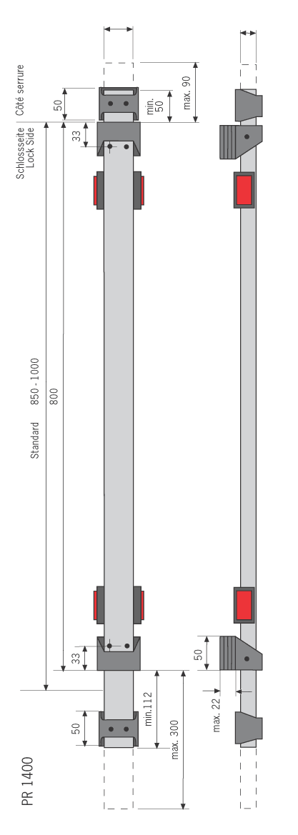 Panzerriegelschloss PR1400Nachfolgend das Maßblatt zum PR1400 |
